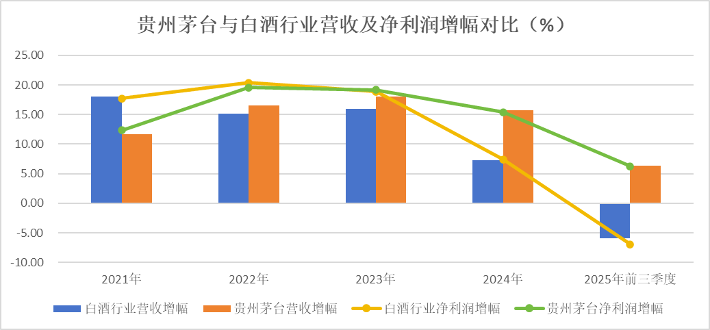 与历史相比,贵州茅台的营收及净利润增速均有所放缓,但在白酒行业整体经营承压背景下,仍交出正增长的答卷,体现较强的稳定与韧性。