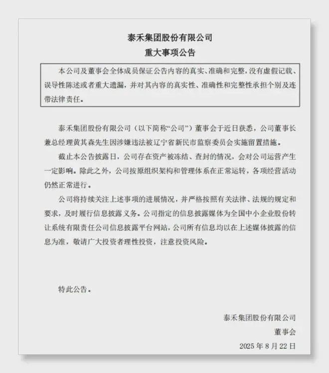 如今黄其森被留置,无疑让泰禾集团的处境雪上加霜。尽管公司表示目前按原组织架构和管理体系在正常运转,各项经营活动仍然正常进行,但董事长被留置这一事件必然会对公司的决策和运营产生一定影响。未来,泰禾集团将面临更加严峻的挑战:如何应对资产被冻结、查封带来的经营困境?如何在黄其森缺席的情况下推进债务重组和企业自救?如何重新赢得市场和投资者的信任?这些问题都亟待解决。