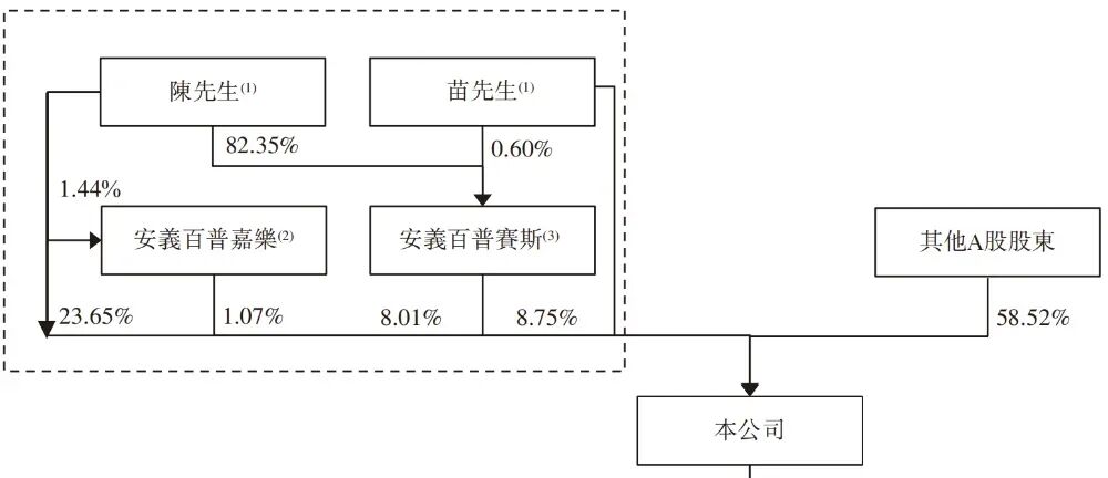 根据一致行动协议及陈宜顶先生作为安义百普赛斯及安义百普嘉乐普通合伙人的身份,陈宜顶先生、苗景贇先生、安义百普赛斯及安义百普嘉乐共同构成公司的控股股东集团,合计持股约41.48%。