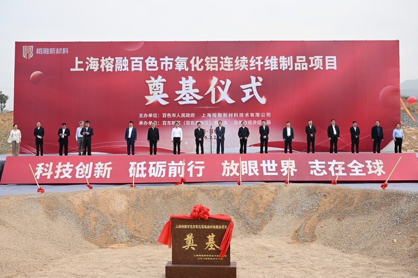 3月18日,“上海榕融百色市氧化铝连续纤维制品项目”奠基仪式在广西百色市举行。通过此次项目合作,双方将携手推动东西部产业深入协同发展,强化区域大市场建设和供应链布局,加速我国在新材料领域核心技术的重大突破,最终实现全面国产替代,推动“国产品牌”氧化铝纤维走向全球。百色市委副书记、市长葛国科,上海榕融新材料技术有限公司董事长孙树人在奠基仪式上致辞。