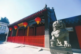 漫步深入,当鼎沸声浪渐弱,胡同尽头宛如被按下静音键。沿长安寺巷西行五十步,长安寺静静伫立,手书匾额在夕照里泛着温润的光,与不远处炫目的霓虹形成奇妙的对峙。门前两只明代石狮怒目圆睁,威严依旧,爪下却蹲伏着游人遗落的卡通玩偶,庄严中透出几分孩子气的俏皮。