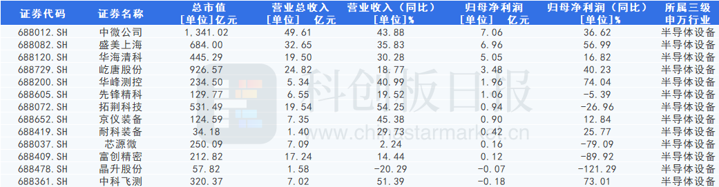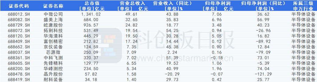 12家科创板半导体设备公司营收正增长