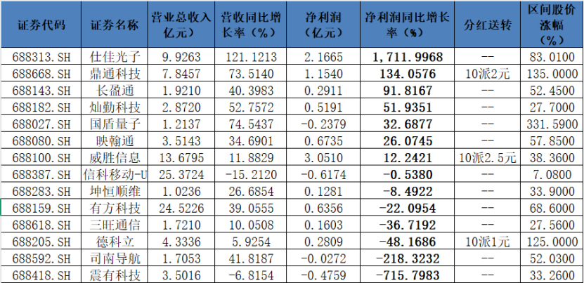 另外,鼎通科技、长盈通和灿勤科技的净利润增幅超过50%,分别为134.06%、91.82%和51.94%,实现净利润1.15亿元、0.29亿元和0.51亿元。
