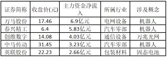 从主力资金来看,今日涨停板个股中,主力资金净流入金额排名前5的个股分别为万马股份、春兴精工、创维数字、中马传动、英联股份。