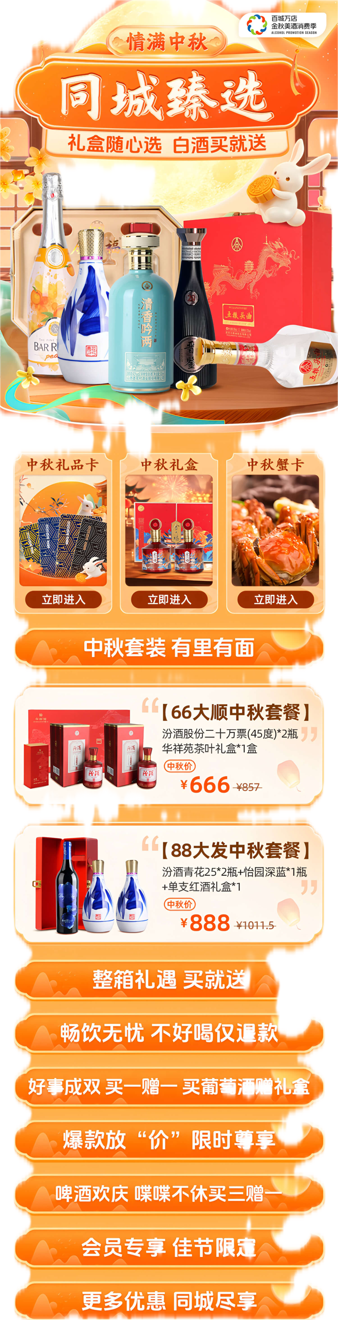 同城酒库作为山西本地生活酒水服务的新零售品牌,在坚持 “品牌直签 + 海外直采” 的供应链模式基础上,顺应数智化浪潮,积极拥抱变革,引入智能设备等数字化工具,优化 APP及小程序交互体验。本次消费季活动期间,同城酒库依托线上+线下全渠道优势,结合中秋佳节,推出酒+礼盒等多种礼赠套装,为消费者提供多样场景化需求解决方案。