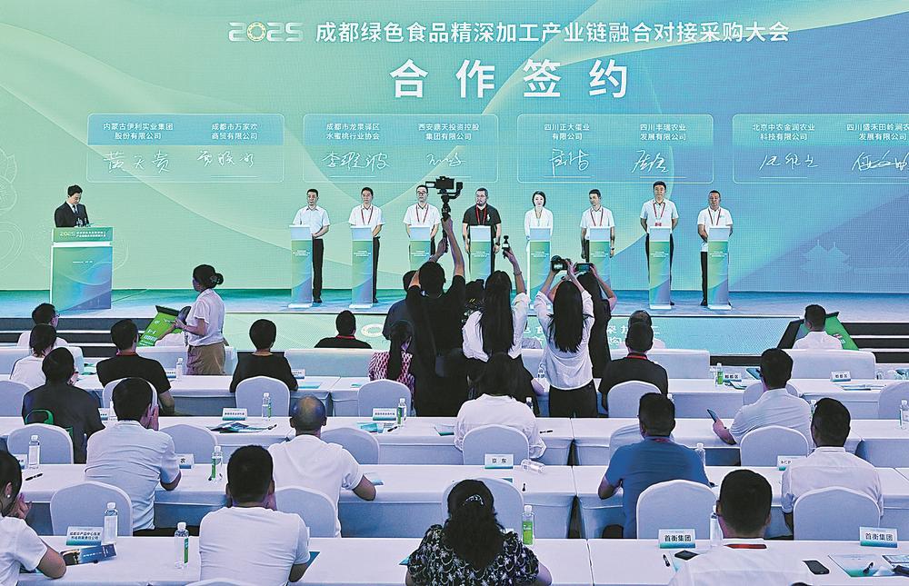 企业积极寻市场,市场也在找产品。2025年成都绿色食品精深加工产业链融合对接采购大会现场呈现出一幅全链条合作的繁荣图景:中粮、益海嘉里、新希望、伊利等国内大型精深加工企业齐聚,与成都现代农业园区、农民专业合作社等农业经营主体精准对接。海吉星、雨润等头部批发市场,北京首农、四川商投等大型国企,伊藤、永辉等连锁商超,以及淘宝、京东等电商平台通过线上线下多元方式参与,共同构建从“田间地头”到“餐桌厨房”的完整产业生态。