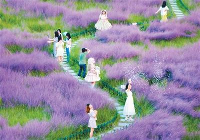 广西壮族自治区南宁园博园景区,粉黛乱子草盛情绽放,吸引了许多游客前来打卡拍照。