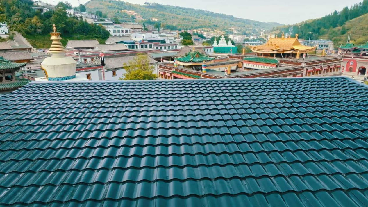 青海省西宁市塔尔寺美学曲面光伏瓦屋顶改造工程采用黄河公司高效N型TBC电池技术制成光伏瓦,实现光伏科技与古建形制的有机融合。