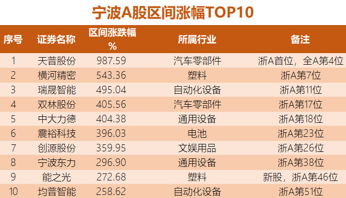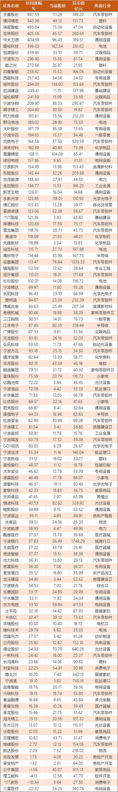 这一年来,A股“宁波军团”也刷新了历史纪录——123家宁波A股上市公司中,超九成公司实现股价上涨,其中43只甬股股价翻倍。