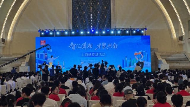 9月27日上午,湖南省促进高校毕业生就业创业专场招聘活动(上海站)在上海展览中心举行。此次招聘活动是湖南省“智汇潇湘才聚湖南”行动的省外首站,当地511家用人单位带来了近1.8万个岗位。现场推介环节,可容纳可容纳700余人的展览中心中央大厅几乎座无虚席,两侧走道也聚集了大批参与活动的学生。而在内场“前排C位“就座的,是参与活动的高校学生——也就是沈晓明口中的“小朋友”们。