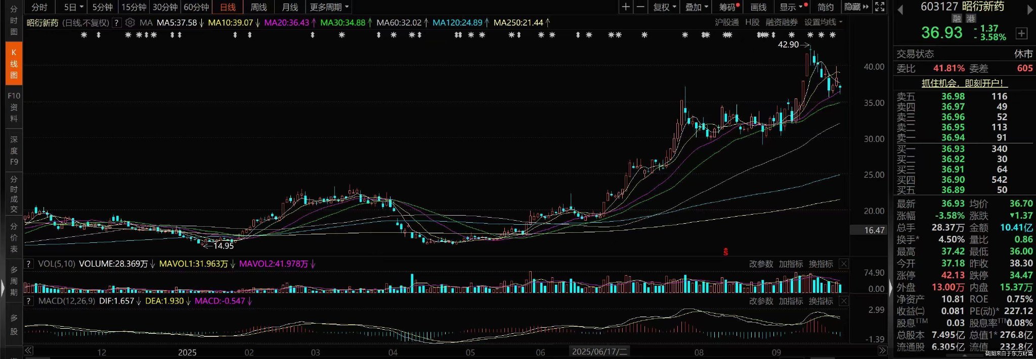 而另一家医药企业昭衍新药同样表现不俗,年内股价已实现翻倍,尤其在9月12日至15日连续两个交易日涨停,并在9月16日创下年内新高。
