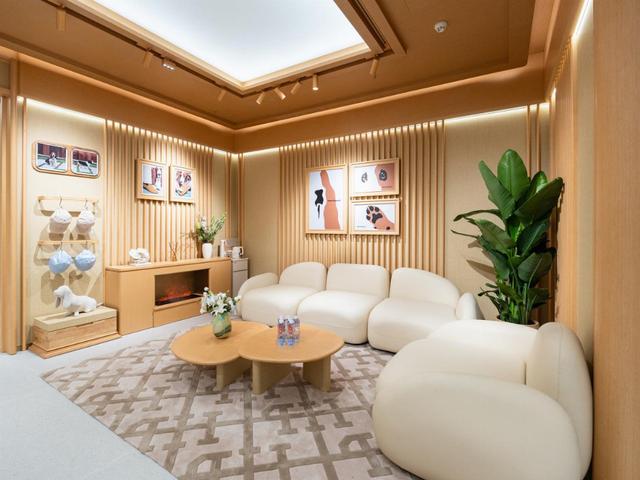 基于对消费需求的深度洞察,品牌打造将近300㎡的旗舰空间——空间设计巧妙融合“家的自在感”、“零售的功能性”与“度假的精致感”,让消费者在购物过程中感受“心的归处”:从“轻步玄关”步入,历经休闲系列、度假系列、试衣体验,最终至休息区结算,每一处细节都围绕“场景化体验”展开。这种设计不仅让产品与空间形成呼应,更将品牌“陪伴”的核心情感价值传递给消费者,实现从“卖产品”到“传递生活方式”的升级跨越。