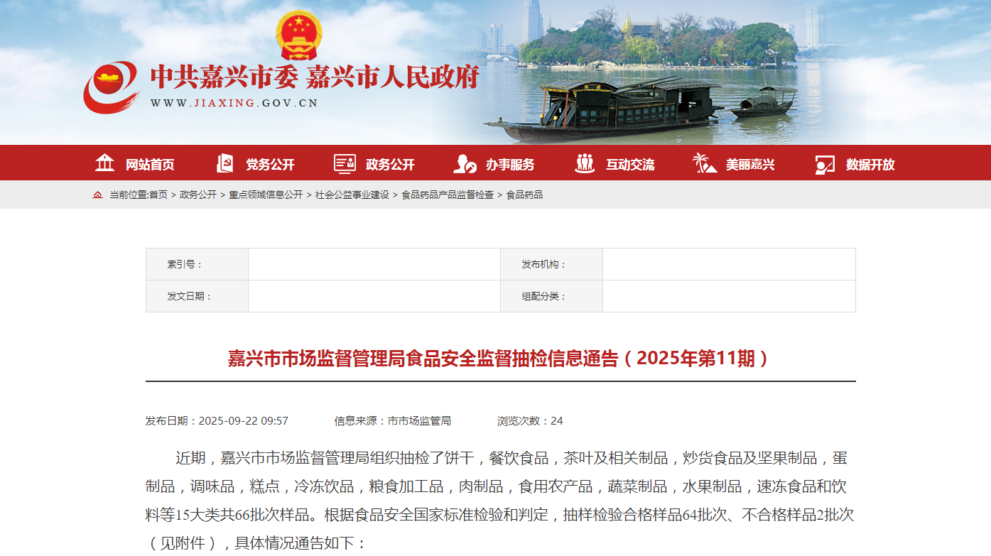 对抽检中发现的不合格产品,嘉兴市市场监管局已责成相关县级市场监管部门依法予以查处。要求南湖区、经开区市场监管部门督促食品经营环节有关单位立即采取下架等措施控制风险。