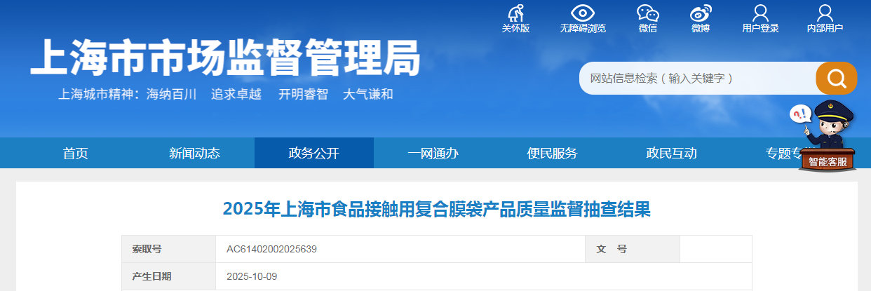 本次监督抽查依据SHSSXZ0220-2025《食品接触用复合膜袋上海市产品质量监督抽查实施细则》组织实施。