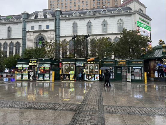 索菲亚景区的商业布局呈现出多元化特征。除此次成交的飞鸽投喂区和自助拍报机点位外,景区广场上现有的商业形态包括旅拍、摄影、DIY激光刻字纪念章售卖机、马迭尔等食品销售以及冰箱贴等文创产品。这些业态与飞鸽投喂区形成了互补,共同构建了完整的旅游体验链条。