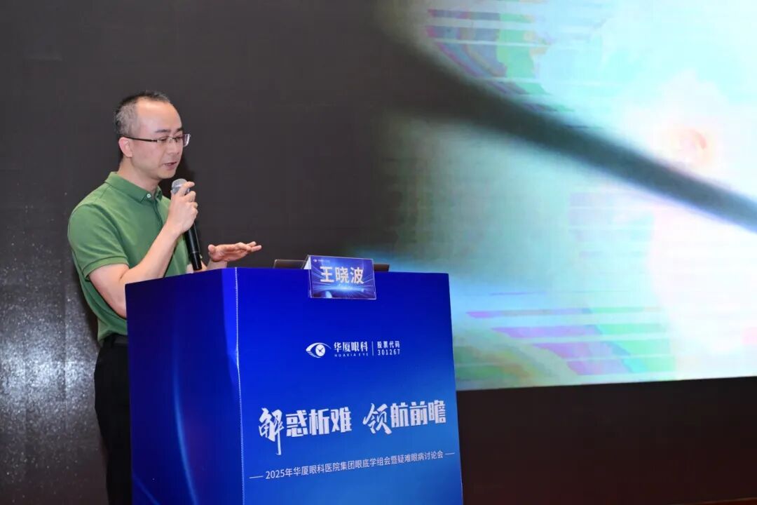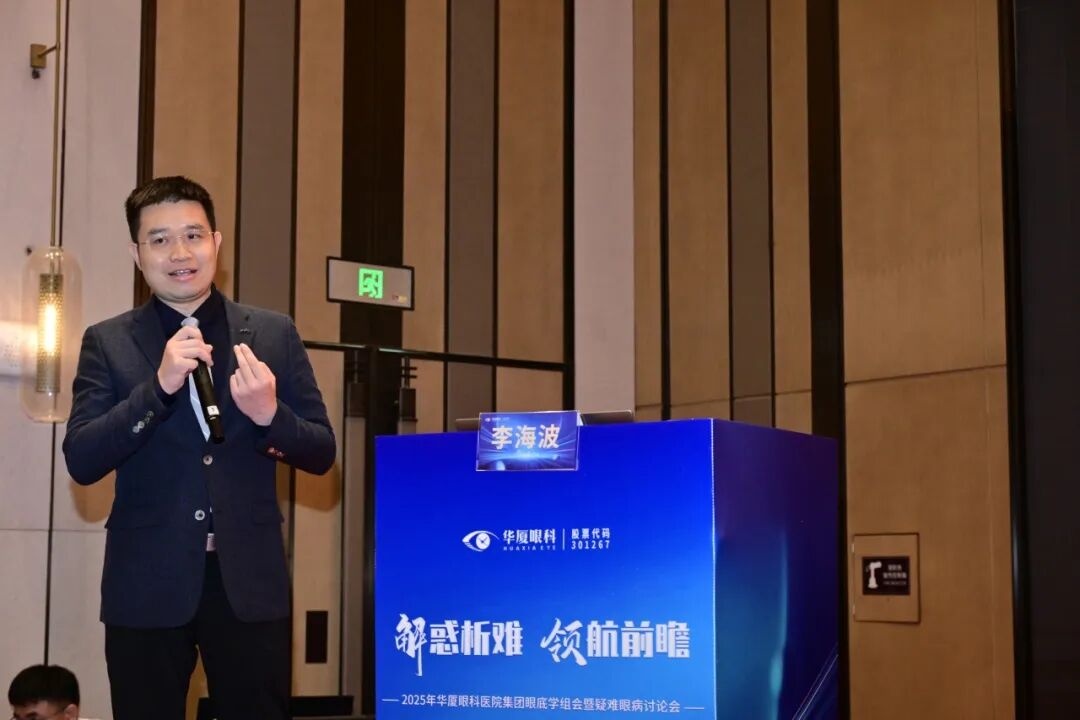 集团领导陈凤国在致辞中表示,眼底学科是集团“技术立院”的重要支撑。多年来,在黎晓新总院长的引领下,学科建设、科研教学、诊疗技术等方面都取得了扎实进步,不仅建成了一支经验丰富、梯队合理的人才队伍,更通过持续开展疑难病例研讨等特色项目,将实战经验转化为普遍提升的诊疗水平,为学科长远发展奠定了坚实基础。最后,他呼吁全体眼底医生要勇于突破技术边界,积极参与学组共建,共同打造具有华厦特色的眼底诊疗体系。
