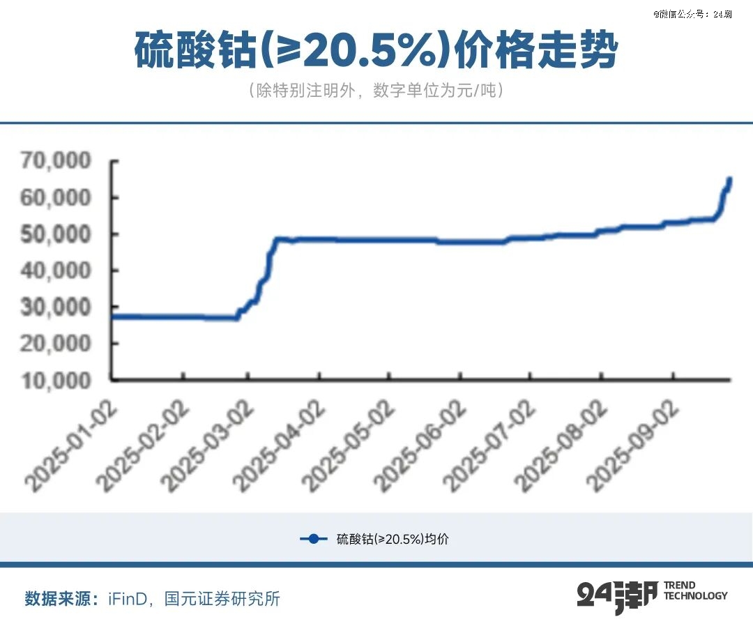 供应紧张迅速反映在价格上。截至9月底,电解钴均价为310,000元/吨,近2周上涨13.55%,年初至今上涨116.78%;硫酸钴(≥20.5%)均价为65,000元/吨,近2周上涨20.82%,年初至今上涨138.10%。