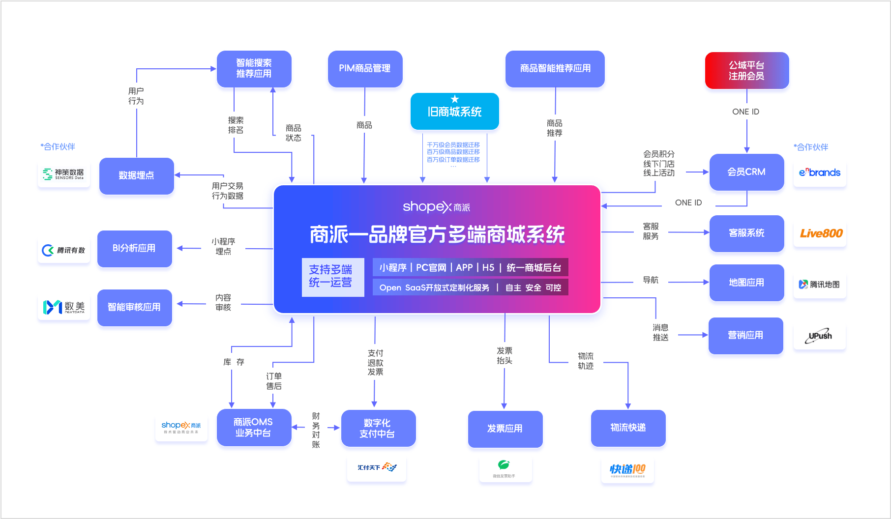 1·5垂直领域深度赋能:在商城系统层面,商派针对中大型品牌企业的全渠道零售电商、B2B经销商采购订货等业务场景,系统适配准确率达95%左右。在时尚服饰领域,商派服务了众多全球知名品牌,商派的多端统一商城系统,帮助品牌实现了品牌官网、小程序商城、APP、H5商城的多端统一运营,一个后台管理所有端口。最重要的是实现了会员等级/权益/交易数据/用户行为数据的多端统一。