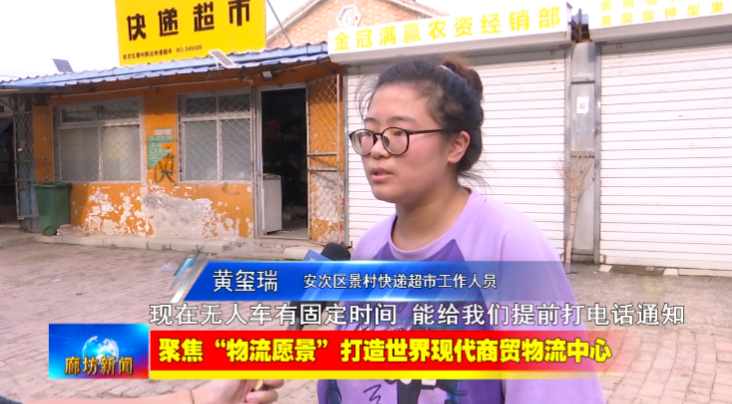 安次区景村快递超市工作人员黄玺瑞:他们以前(人工)送货没有固定时间,现在无人车有固定时间,能给我们提前打电话通知,让我们有接货的准备,提高了我们入库的效率。