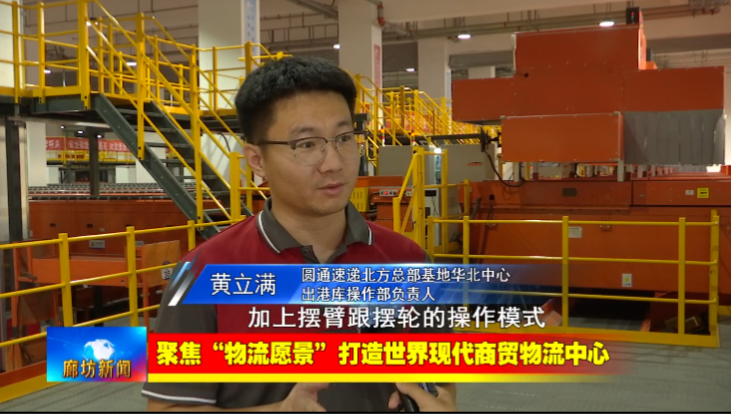 圆通速递北方总部基地华北中心出港库操作部负责人黄立满:以前我们这个(分拣)线是由视觉设备五面扫加上摆臂跟摆轮的操作模式,现在是由视觉设备六面扫加上一个窄带机的分拣模式,现在更提高了我们分拣的效率,大概是提高了15%。
