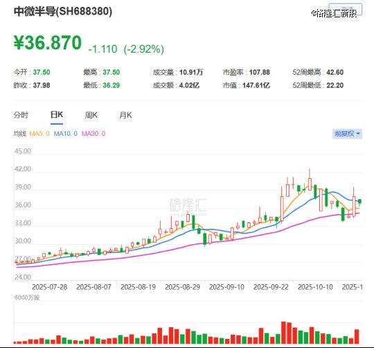 2022年8月,中微半导在科创板上市,股票代码:688380.SH,截至10月22日收盘,公司股价为36.87元/股,市值约147亿元。