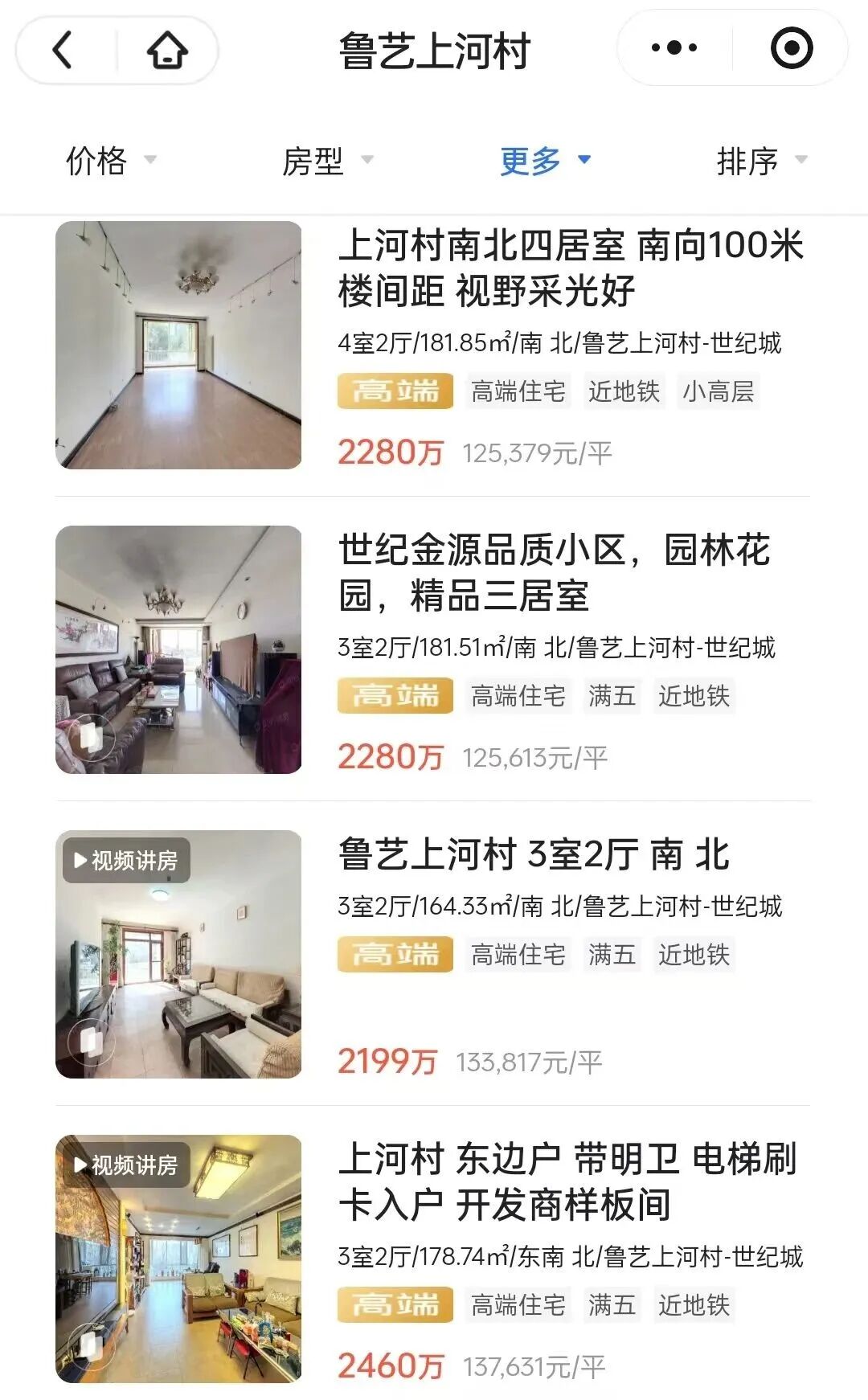 小区楼栋外观 图片来源:贝壳根据平台信息,小区名称为“鲁艺上河村”,建成年代为2001-2007年,容积率1.7,绿化率45%,9月挂牌均价为14.55万元/平方米,目前在售房源23套。小编通过检索发现,与公告中房产相似的房型最低挂牌均价为12.5万元/平方米。
