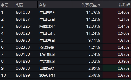 【能源ETF(159930)标的指数前十大成分股】