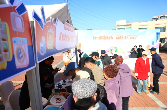 家电家居焕新促销优惠展区内,苏宁易购等企业带来了“超级补”、“真惠补”等专属优惠,以及老旧家电回收、保养清洗服务,吸引众多居民咨询下单,进一步提升生活品质的同时,也促进了绿色消费。