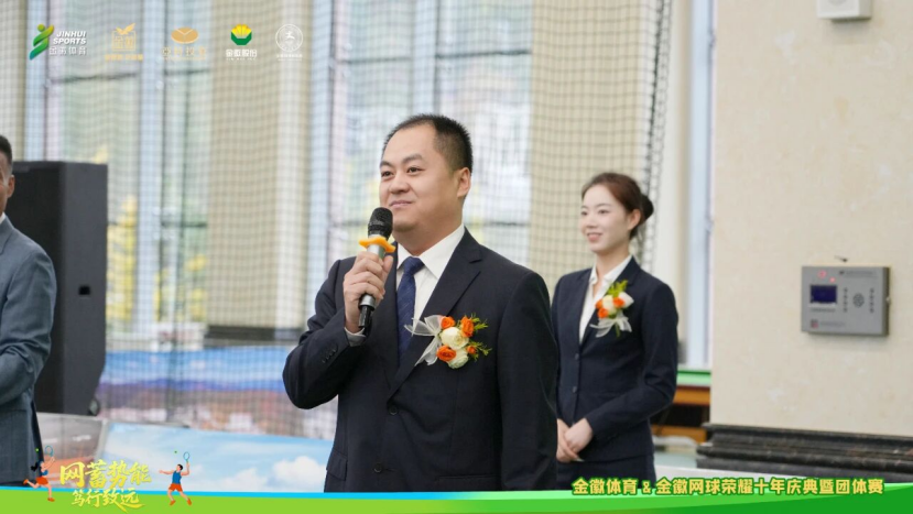 郭宏在开幕式上致辞,他表示,金徽体育始终秉承“健康向上、追求卓越”的理念,十年砥砺奋进,铸就今日荣耀。愿这场盛会不仅展现运动的激情与力量,更传递金徽人团结拼搏、永不言弃的精神风貌。让我们以网球为媒,以体育为桥,共同书写金徽下一个十年的辉煌篇章。