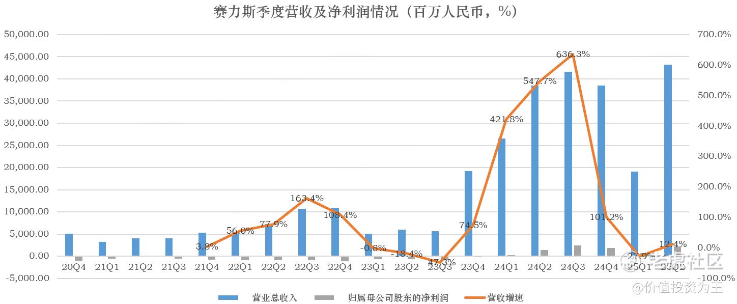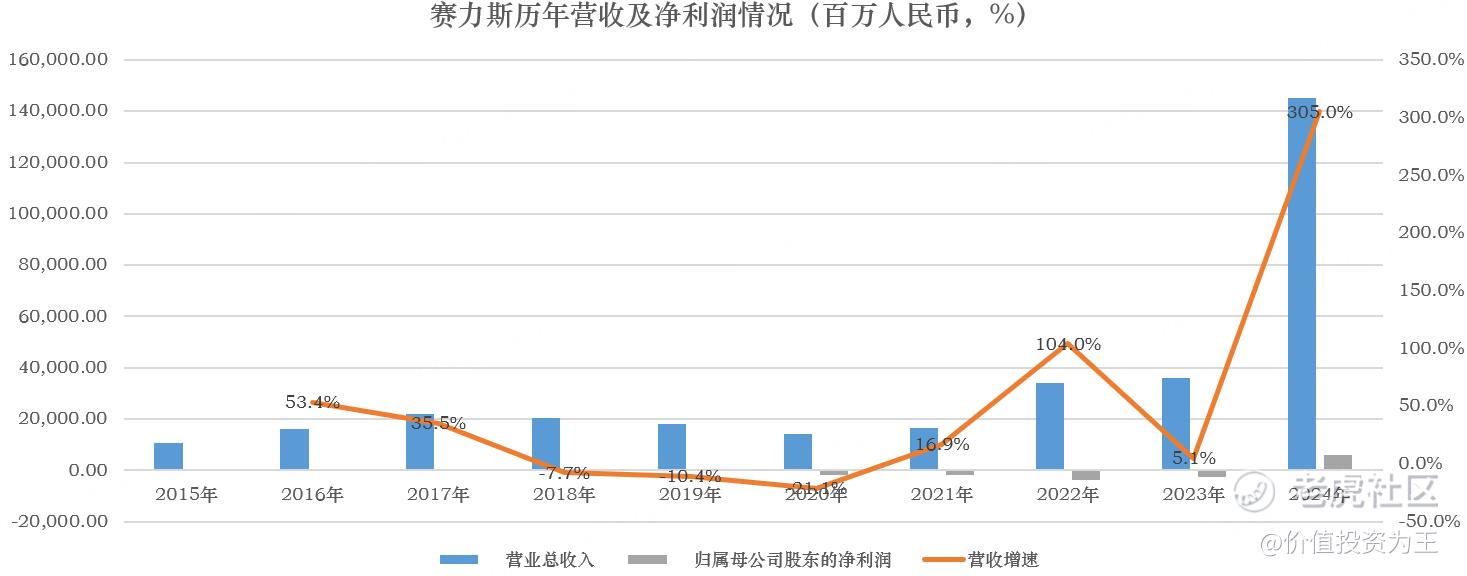 搭上**这趟快车后,赛力斯从2022年开始,营收大幅增长,2024年净利润更是达到59亿,实现逆天改命!