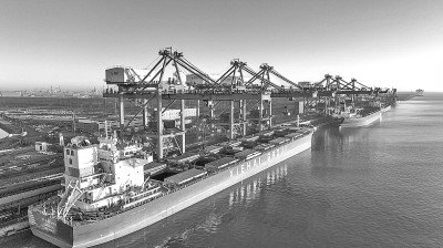 冬季即将来临,河北省唐山港京唐港区煤炭堆场、码头一片忙碌景象,工人们加紧进行电煤转运、装船等工作,全力保障电煤供应。图为10月27日,轮船停泊在唐山港京唐港区煤炭码头进行装船作业。新华社发