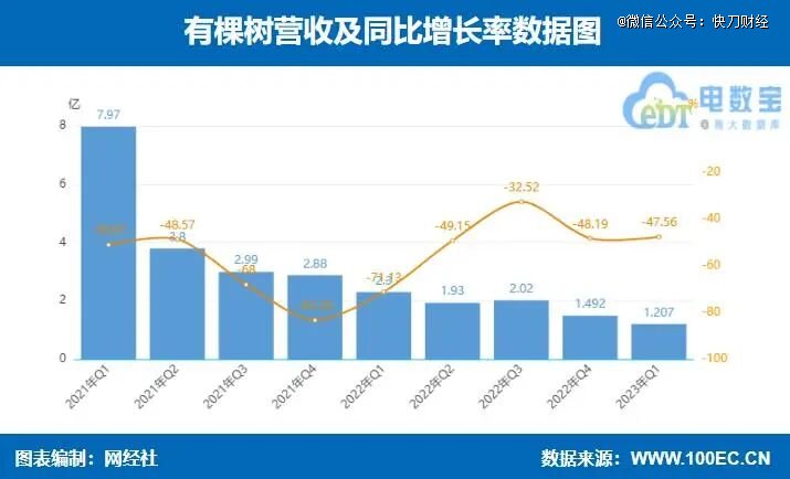 ▲图/深圳证券交易所2021年,有棵树在亚马逊上的收入就从2020年的15亿元左右下降到了5亿元,跌幅达到65.86%。受此影响,2021年,有棵树营收仅有17.64亿元,同比下降64.91%;归母净利润亏损高达26.76亿元,同比下降207.3%。