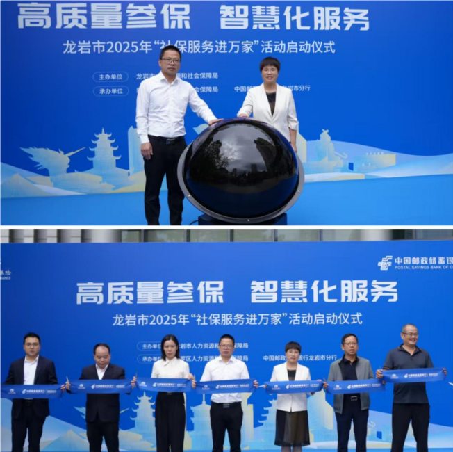 启动仪式上,龙岩市人社局与邮储银行龙岩市分行共同点亮启动球,并为合作网点剪彩,寓意“金剪齐开,服务通达”。