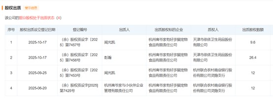 更值得警惕的是,高爷家在收购前已显现资金压力。天眼查数据显示,2025年6月以来,高爷家已发生四笔股权质押,质权人包括杭州联合农村商业银行及收购方依依股份,这意味着公司可能通过股权质押缓解短期资金紧张;同年7月,高爷家还因合同纠纷被山东宠云行供应链管理有限公司诉至杭州市余杭区人民法院,侧面反映出其经营层面的潜在风险。