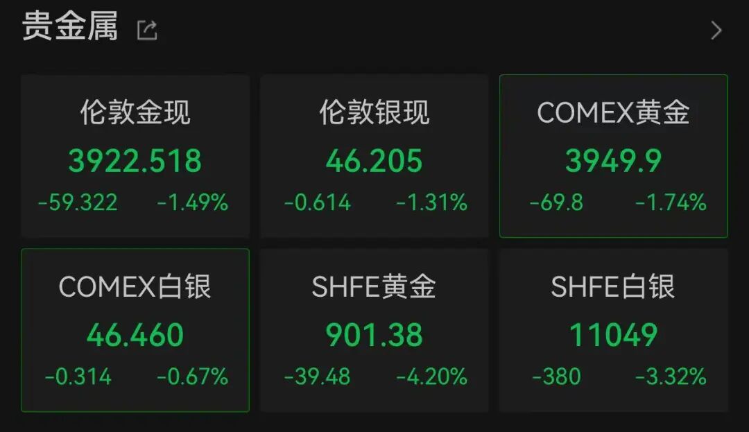 10月28日,伦敦现货黄金、COMEX黄金大幅走低,截至16:15,均跌超1%,现货黄金价格失守3930美元/盎司;沪金直逼900元关口。