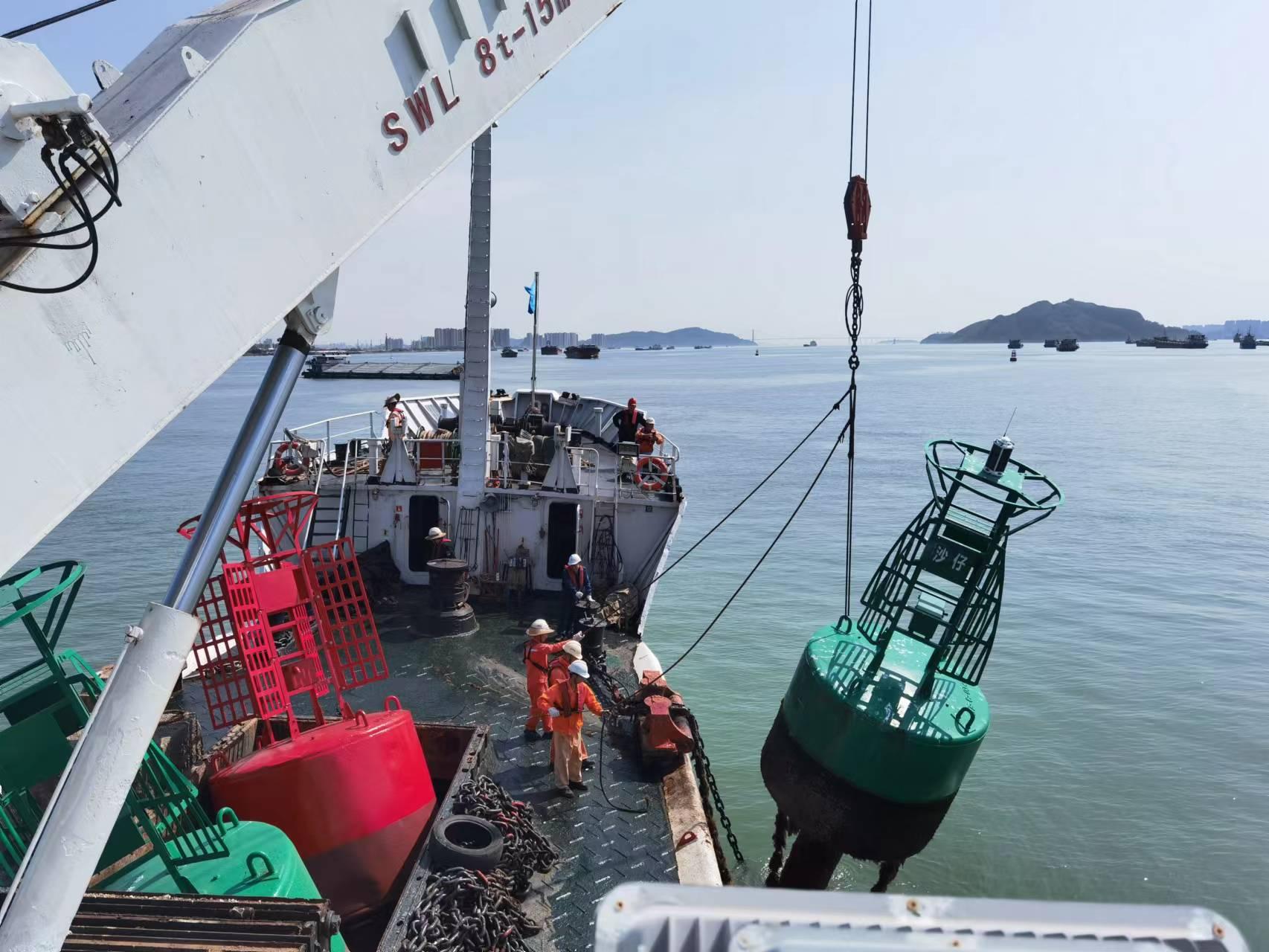 “十四五”以来,广州航标处共完成三峡阳江沙扒海上风电场等超12个海上风电场项目施工期及营运期专用航标设置工程;在广东沿海外航路设置3座大型浮标,有效降低船舶进入海上风电场水域的风险,保障了施工期和营运期船舶通航安全,积极推动海上新业态发展,保障海上安全和加速推动国家“双碳”目标实现。