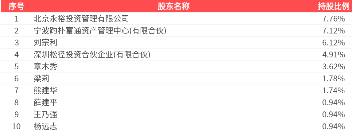 公司股东户数为3.39万户,前十大股东持股数量为1.36亿股,占总股本比例为35.88%,前十大股东持股情况如下: