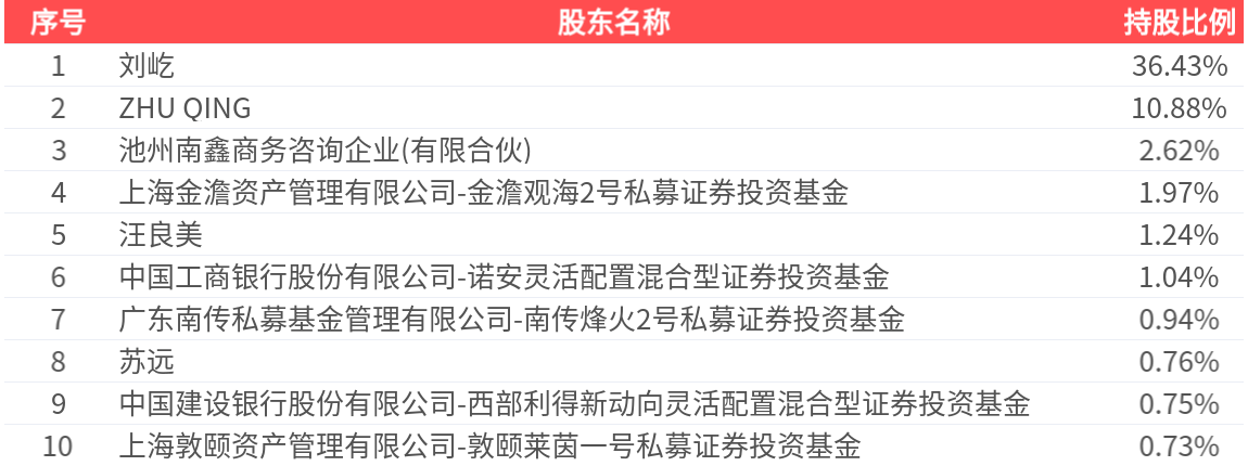 公司股东户数为1.04万户,前十大股东持股数量为4588.29万股,占总股本比例为57.35%,前十大股东持股情况如下:
