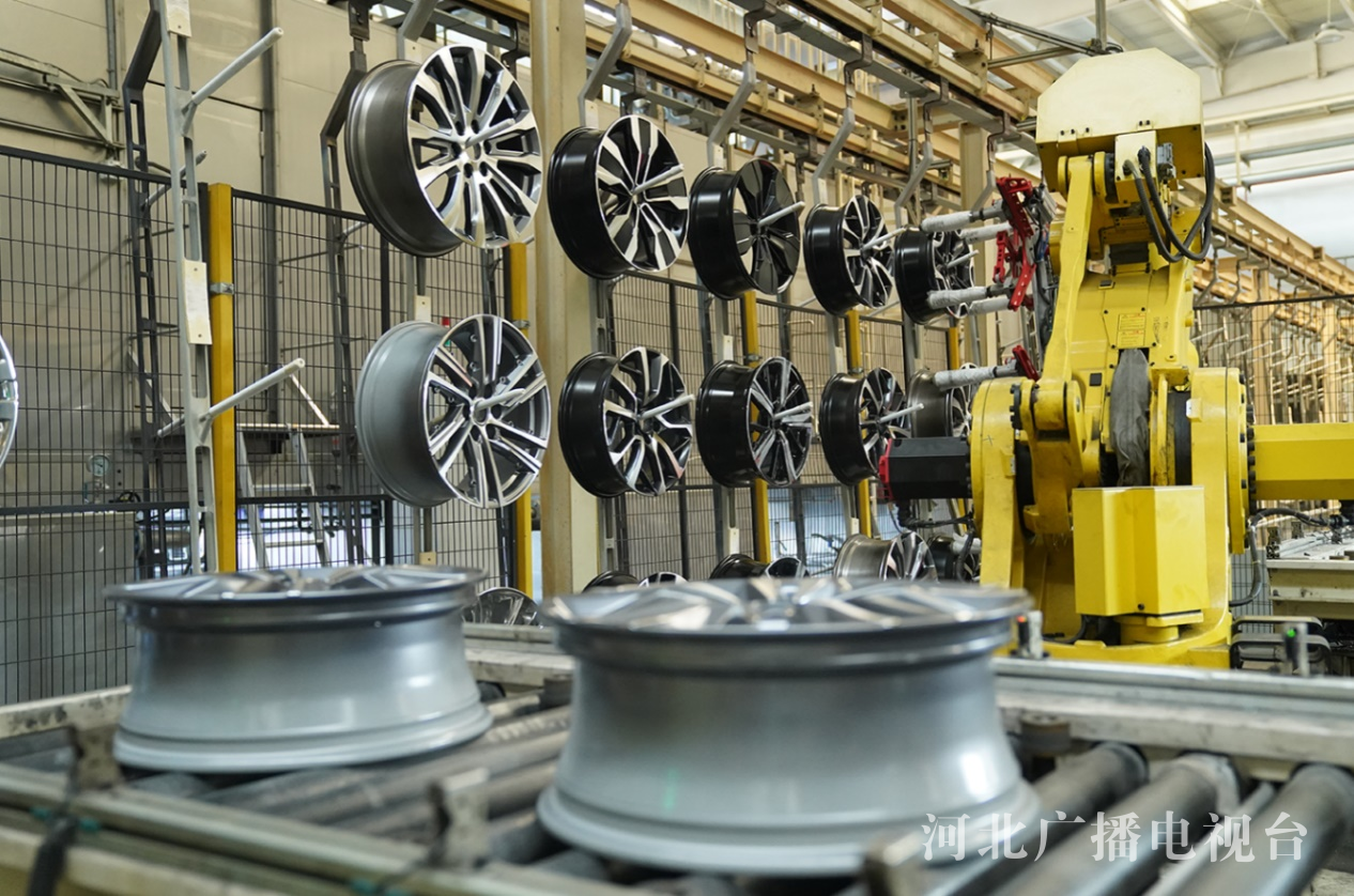 来到涂装区,只见机械臂灵活挥动,为轮毂精准喷涂上不同颜色的漆料。技术质量部负责人赵林然说,过去固定喷枪一次只能喷涂一种颜色,现在每只机械臂能携带8支喷枪,还可以随时切换颜色。依托这条“快速响应”产线,即便“一件起订”的个性化需求也已经成为现实。