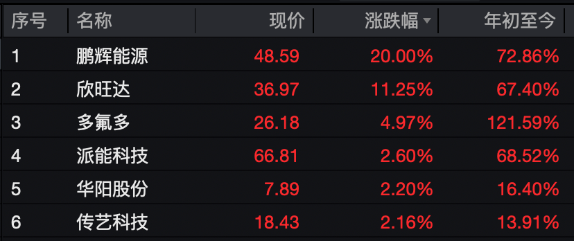 欣旺达涨幅超11%,多氟多、派能科技、华阳股份等个股跟涨。