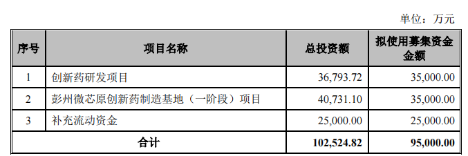微芯生物8月23日披露2024年度向特定对象发行股票证券募集说明书(申报稿)显示,本次向特定对象发行股票募集资金总额不超过95,000.00万元(含本数),募集资金总额扣除相关发行费用后的净额将用于投资以下项目:创新药研发项目、彭州微芯原创新药制造基地(一阶段)项目、补充流动资金。