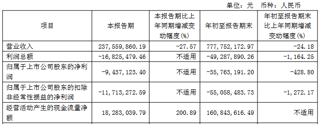 2025年1-9月,公司实现营业收入7.78亿元,同比下降24.18%;归属于上市公司股东的净利润为-3,576.32万元,上年同期为1,087.68万元;归属于上市公司股东的扣除非经常性损益的净利润为-5,505.85万元,上年同期为469.72万元;经营活动产生的现金流量净额为1.61亿元。