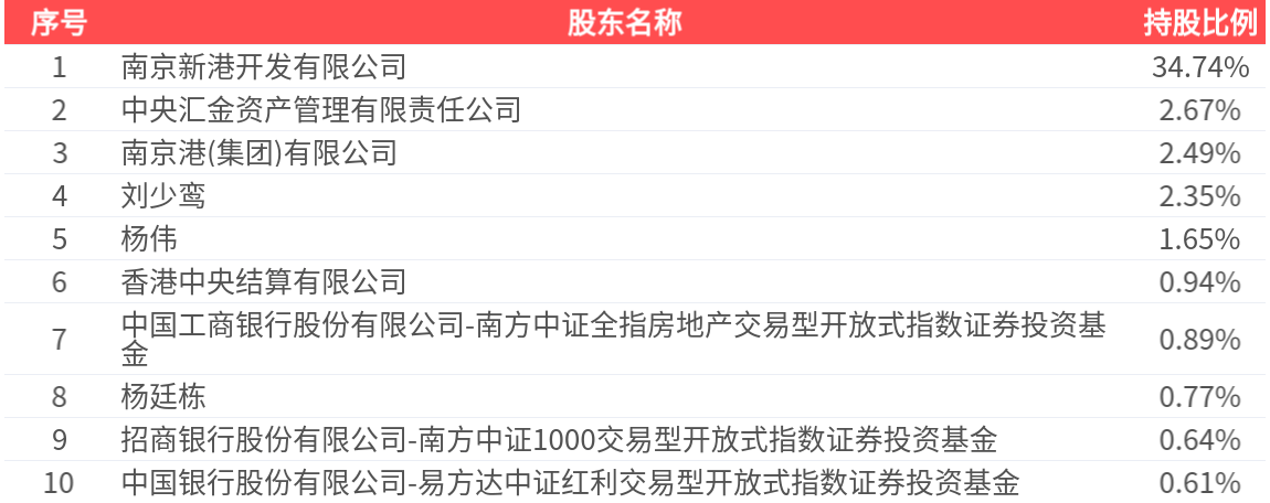 公司股东户数为4.22万户,前十大股东持股数量为8.26亿股,占总股本比例为47.74%,前十大股东持股情况如下:
