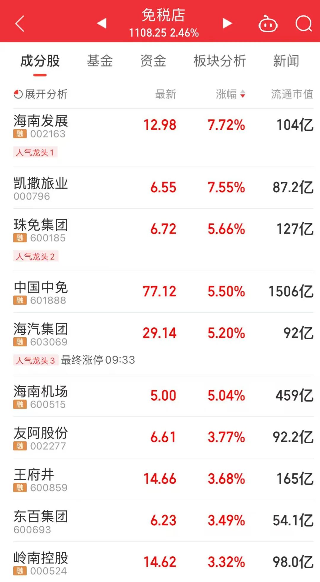 免税店板块中,海南发展、凯撒旅业等个股上涨。