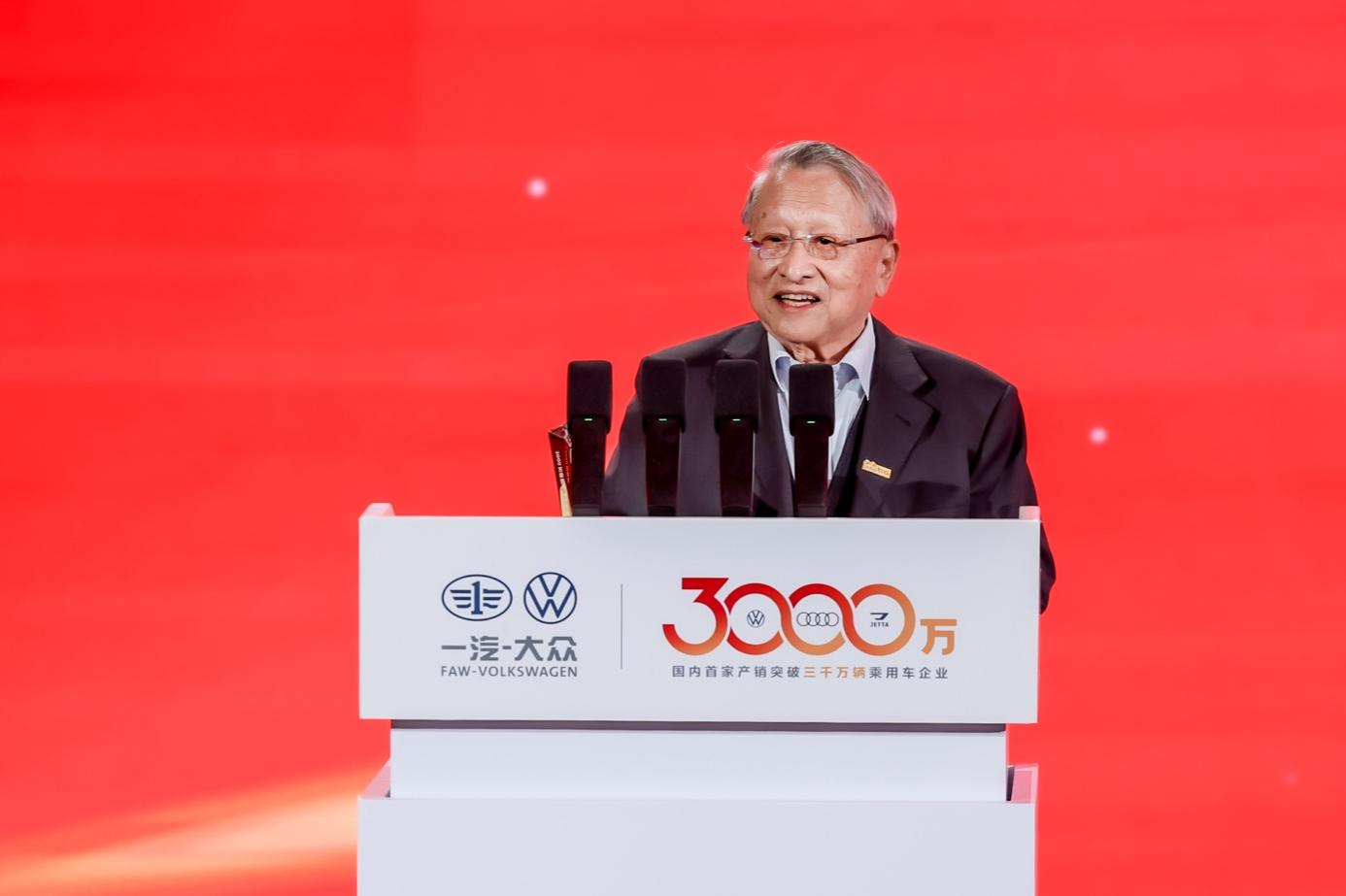中国一汽原副总经理、一汽-大众第一任总经理林敢为在发言中深情回顾了企业从合资筹建到稳健发展的奋斗历程,回忆了企业从无到有、由小到大的艰辛与荣耀,为见证企业跨越3000万辆的重要时刻感到欣慰和自豪,希望一汽-大众在新的起点实现新的突破、创造新的辉煌。