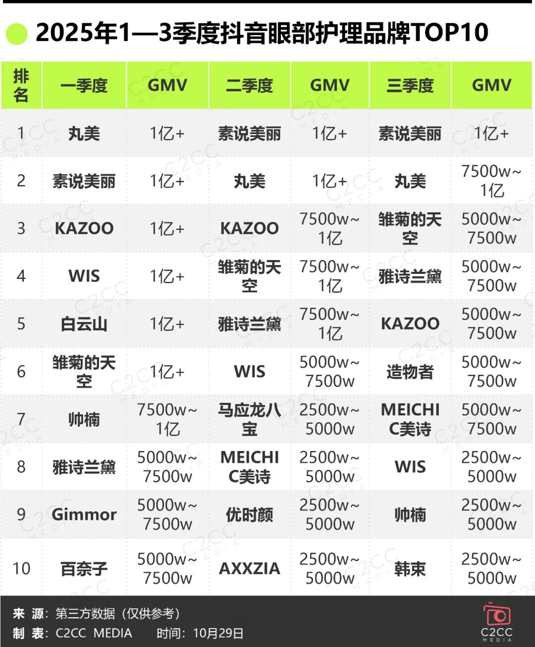 与此同时,抖音美妆白牌也进入深度洗牌期。此前表现活跃的温博士、VC、造物者、迪仕艾普、MEICHIC美诗等白牌已从TOP10榜单中消失,但新势力同样不容小觑:BABI首次闯入前10,ELL更是在Q2冲榜后,于Q3强势拿下TOP3位置。