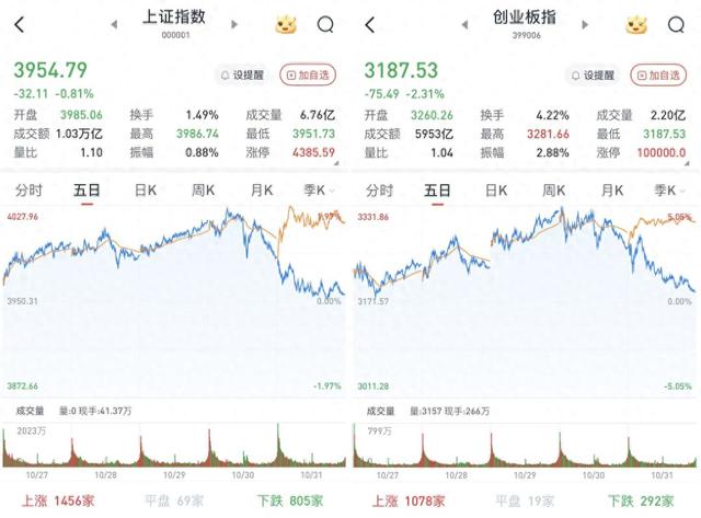 A股三大股指10月31日集体小幅低开。两市全天震荡走低,前期强势权重股多数回调,小盘股迎来反弹行情带来个股普涨行情。