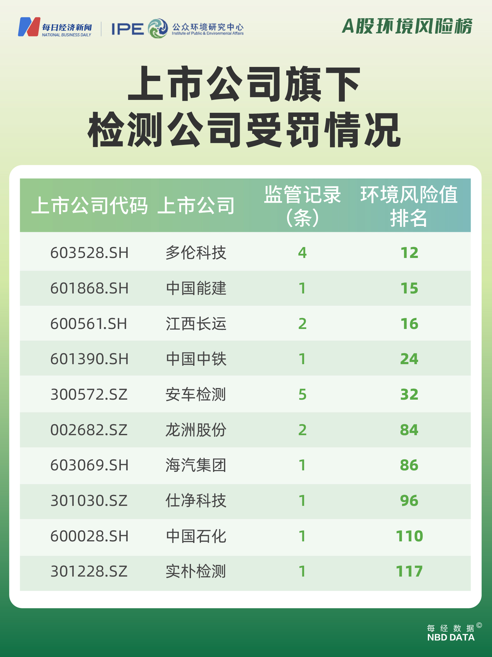 2025年上半年A股环境风险榜数据显示,多伦科技(SH603528)旗下多家控股检测公司因检测数据造假,出具虚假报告等行为被罚,罚款共计40.8万元。多伦科技位列2025年上半年A股环境风险榜第十二位。