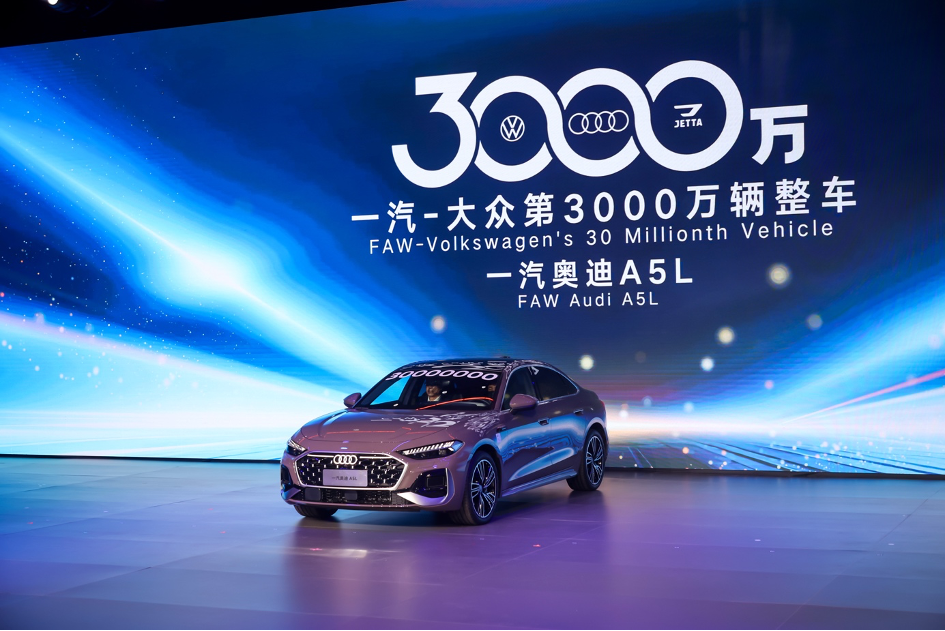 10月30日,一汽-大众第3000万辆整车 —— 一汽奥迪A5L领航版在长春基地正式下线,这家成立34年的中德合资企业由此成为国内首家产销突破3000万辆的乘用车企业。