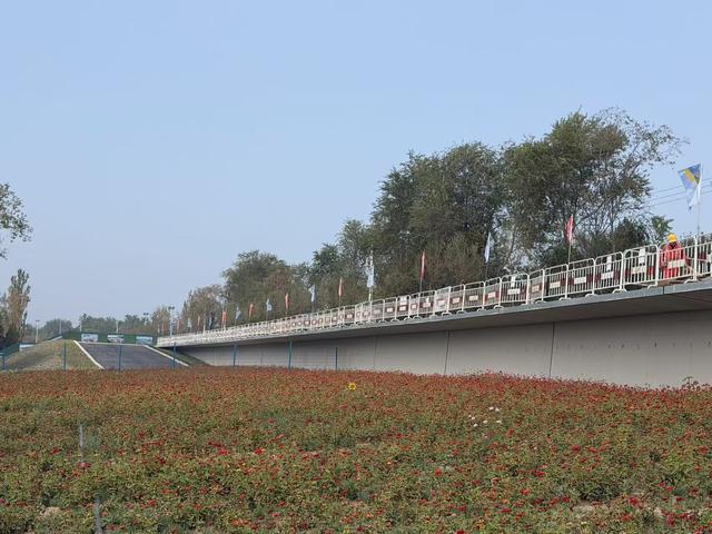 站在永定河左堤向下看,河水在眼前奔腾不息,水鸟掠过水面自在起舞,红的、黄的菊花布满边坡;抬头望,湖光山色、秋色宜人,每隔几分钟,远处的高铁列车疾驰而过,高大巍峨的永定塔与河水相衬。